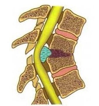 เมื่อเทียบกับพื้นหลังของการเปลี่ยนแปลงความเสื่อมดังกล่าวดิสก์ intervertebral สามารถยื่นออกไปสู่คลองกระดูกสันหลัง การระคายเคืองของเอ็นยาวด้านหลังที่อุดมไปด้วยเส้นประสาทตอนจบมาพร้อมกับความเจ็บปวดในท้องถิ่น